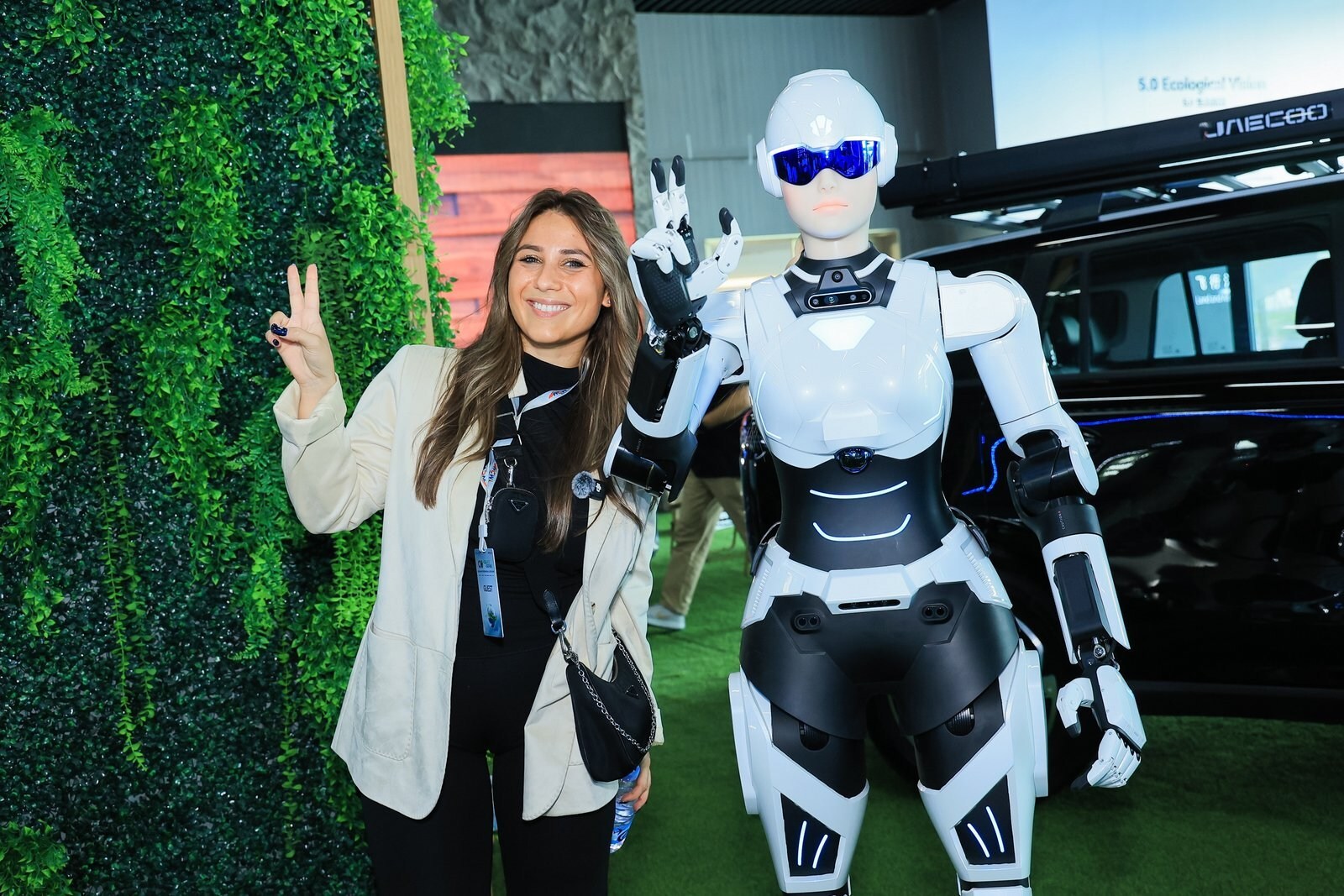 At the CHERY pavilion, Mornine provided multilingual vehicle presentations for global visitors; in OMODA & JAECOO, she explained the Super Hybrid System (SHS) powered by the Chery large model, offering smooth and natural interaction.