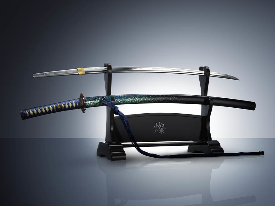 The Juryoku-Maru: San, an original sword commissioned by Casio for the MR-G line, brings the katana sword and MR-G design together in the combination of strength and functional beauty for which both are known. The katana blade is forged by master swordsmith Kamiyama Teruhira, and the aogai1 blue shell lacquer scabbard is designed by traditional artisan Nomura Mamoru.