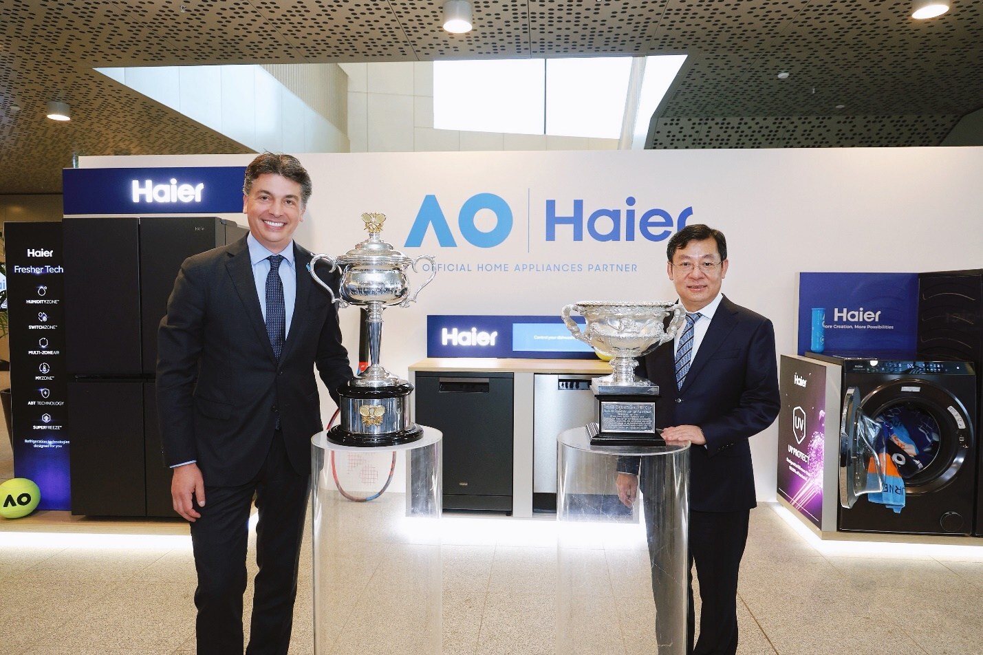 L-R: Cedric Cornelis, Tennis Australia Chief Commercial Officer and Li Huagang, Senior Vice President of Haier Group and Chairman and CEO of Haier Smart Home