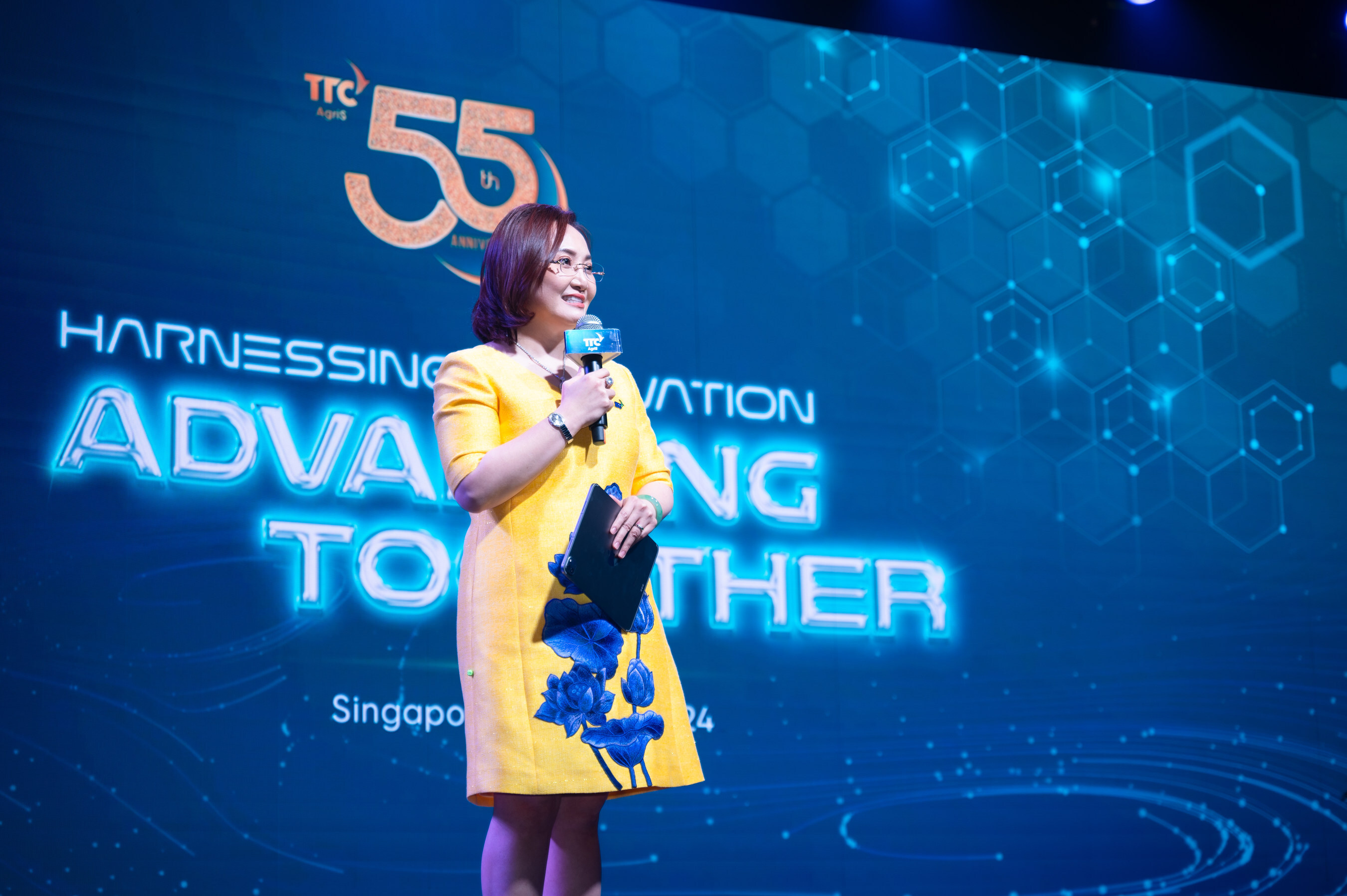 Vice Chairlady of TTC AgriS, Mrs. Dang Huynh Uc My (Omi Dang) delivered opening speech at TTC AgriS International Partners Day 2024, exploring potential for global cooperation to build a sustainable agricultural and international trade value chain